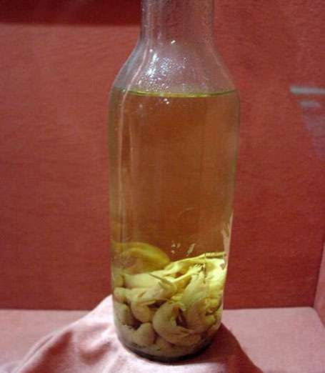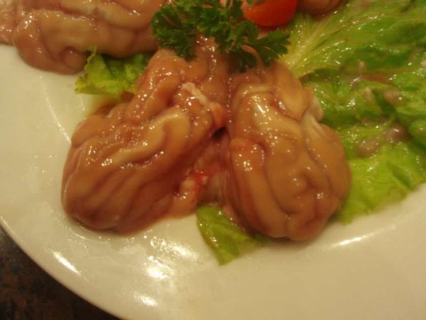 Այս ճաշատեսակի յուրահատկություն այն է, որ ուղեղը մատուցվում է հում վիճակում դեռ կենդանի կապիկի գանգի մեջ: Ողջ կապիկին օղի են խմեցնում, հարմարեցնում են նրա գլուխը սեղանի հատուկ անցքի մեջ, որից հետո զգուշորեն գանգի մեջ ծակ են բացում և հանում են սարսափազդու ճչացող կապիկի ուղեղը: Դա, ի դեպ, ճաշատեսակ է ընտրյալների համար: Այն ճաշակում էին Ուգո Չավեսը և Մաո Ցզե Դունը: Համարվում էր, որ կապիկի ուղեղը խելք և երիտասարդություն է հաղորդում: