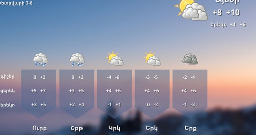 Օդի ջերմաստիճանը փետրվարի 4-ի գիշերը կբարձրանա 3-5 աստիճանով: