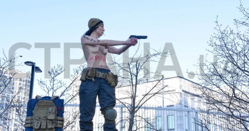 Կիևում ԱՄՆ դեսպանատան մոտ մերկ ուկրաինուհին դուրս է եկել բողոքի ակցիայի և կոչ արել ամերիկացի դիվանագետներին աջակցել հանրապետությանը Ռուսաստանի հետ հակամարտությունում։ Այս մասին գրում է «Страна.ua»-ն։