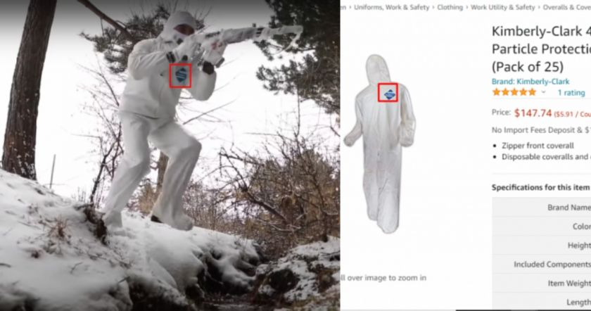 Ռեպորտաժում ասվում է, որ հետախուզական խմբի հագուստը հարմարեցված է տեղանքին։ Տեսանյութի ուսումնասիրությունից, սակայն, պարզ է դառնում, որ հետախույզների համազգեստները ռազմական չեն։ Ավելին՝ տեսանյութի հենց առաջին վայրկյաններից հետախույզների քողարկիչ համազգեստի վրա երևացող տարբերանշանը «պատմում է» դրա ծագման մասին։