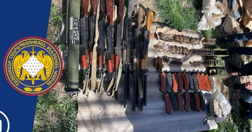 Տեղեկացնենք, որ 2022թ. ապրիլի 11-ին, օրենքով սահմանված կարգով, խուզարկություն է իրականացվել Երևան քաղաքի բնակչի տանը, որի ընթացքում հայտնաբերվել և առգրավվել է զրահաբաճկոն, իսկ տան բակում՝ 3 հատ «АКМ», 2 հատ «АКС», 1 հատ «АК74», 3 հատ «РПК» տեսակի ինքնաձիգ, 1 հատ «РПГ» տեսակի նռնականետ, 7 հատ «Ф1» տեսակի, 6 հատ «РГД5» տեսակի նռնակ և նռնակի համար նախատեսված՝ 15 հատ պայթուցիչներ: