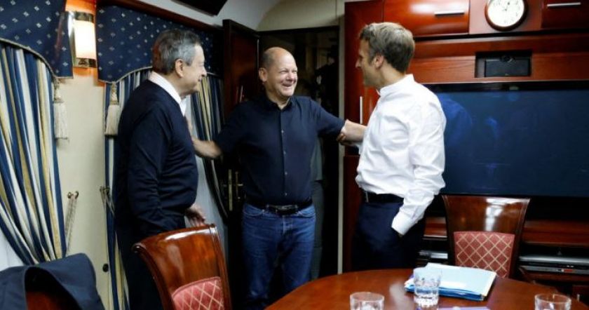 Ֆրանսիայի նախագահ Էմանուել Մակրոնը, Գերմանիայի կանցլեր Օլաֆ Շոլցը և Իտալիայի վարչապետ Մարիո Դրագին հինգշաբթի՝ հունիսի 16-ին, ժամանել են Կիև։ Այս մասին հայտարարել է Ֆրանսիայի արտգործնախարար Քեթրին Կոլոնան։