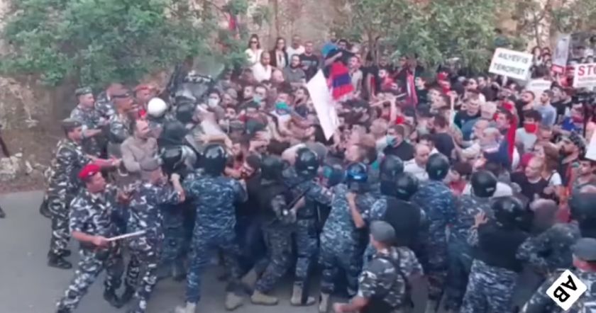 Բախումներ՝ հայ ցուցարարների բողոքի ակցիայի ժամանակ Բեյրութում՝ Լիբանանում Ադրբեջանի դեսպանատան մոտ: