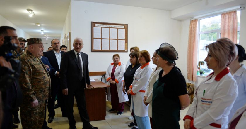 Նախագահն այցելել է նաև Սիսիանի զինվորական հոսպիտալ, տեսակցել զինծառայողներին և շուտափույթ ապաքինում մաղթել: