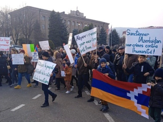 Ստեփանակերտի Վերածննդի հրապարակում մեկնարկեց Արցախի բնակիչները բողոքի ակցիան՝ Արցախը Հայաստանին և արտաքին աշխարհին կապող ճանապարհն անհապաղ բացելու պահանջով: