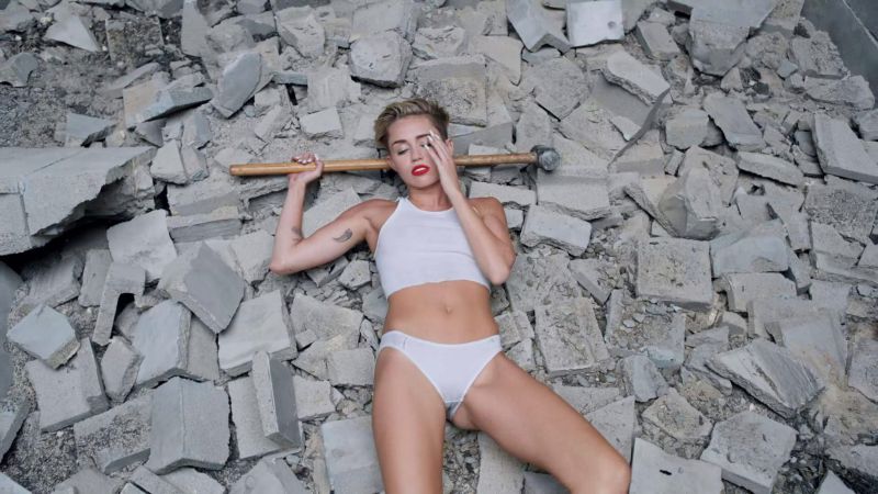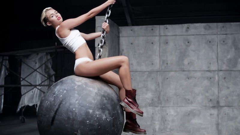 Վերջին «2013 MTV Video Music Awards antics» արարողակարգում ցնցելուց հետո շատերը Miley Cyrus-ին սկսեցին նմանեցնել անչափահաս չարաճճիի: Երեւում է` հիմա Մայլիի համար շատ ուշ է ետ գնալ, եւ նա որոշեց առաջ ուղևորվել` առանց հագուստի նկարահանվելով տեսահոլովակներում: Ահա կադրեր «Wrecking Ball» վերջին երգի տեսանյութից.