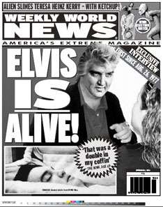 Ռոքնռոլի արքա հռչակված Էլվիս Փրեսլիի դիակը հայտնաբերել են իր տան լոգարանում: Նրա կողքին է եղել իր հարսնացուն: Ասում են, որ նրա մահը վրա է հասել դեղահաբերի չարաշահման հետևանքով: Նրան թաղել են Գրեյսլենդում իր մոր կողքին: Աշխարհի տարբեր երկրներից շատ մարդիկ կասկածում են, թե նա մահացել է: Որոշ մարդիկ ասում են, որ նրա հայրանունը սխալ է գրված շիրիմի վրա, այլոք էլ պնդում են, որ դագաղի մեջ մոմե մարմին է դրված եղել: Ըստ վարկածներից մեկի` Էլվիսին ձեռնտու է եղել մահացած ձևանալ, քանզի նա պարտք էր մի ազդեցիկ մաֆիոզի: Որոշ մարդիկ անգամ պնդում են, որ տեսել են Էլվիսին տարբեր տեղերում` ամենից հաճախ Թենեսիում: