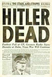 Ադոլֆ Հիտլերը ցիանիդ էր ընդունել և մահացել ցիանային թունավորումից: Հիտլերը հայտարարել է, որ ինքը չի ցանկանում արժանանալ Բենիտո Մուսոլինիի ճակատագրին: Հիտլերի ինքնսասպանությունից հետո նրա մարմինը հայտնաբերվեց և թաղվեց Մագդեբուրգի մի գաղտնի վայրում, սակայն դրանից հետո նրա դիակն արտաշիրիմվեց և նրա աճյունը նետվեց Էլբա գետը: Իոսիֆ Ստալինը նշում էր, որ Հիտլերը կարող է Արգենտինա կամ Իսպանիա փախած լինել: Այլոք էլ կարծում էին, որ գերմանացիները փորձում են կոծկել Հիտլերի փախուստը: Թեպետ դատաբժշկական փորձաքննության արդյունքներից պարզ դարձավ, որ դիակը պատկանում էր Հիտլերին, որոշ մարդիկ մինչ այժմ էլ կարծում են, թե նա ողջ է: Գտնվել են անգամ մարդիկ, ովքեր պնդում են, թե բազմիցս տեսել են նրան: