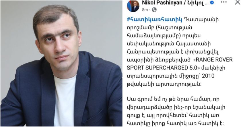 Նիկոլ Փաշինյանը հայտնում է, որ Հայաստանի Հանրապետությանն է փոխանցվել ապօրինի ձեռքբերված Range Rover ավտոմեքենա։