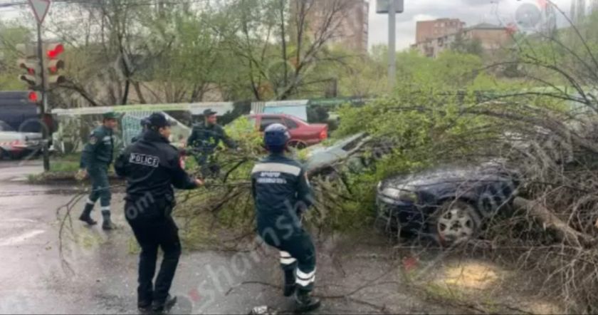 Այսօր՝ ապրիլի 9-ին, արտակարգ դեպք է տեղի ունեցել Երևանում: Ժամը 17:00-ի սահմաններում Գայի պողոտայում՝ Բաղյան և Հովհաննիսյան փողոցների խաչմերուկում ուժեղ քամու հետևանքով ծառը կոտրվել և ընկել է կայանված «Toyota» և «Opel» մակնիշի ավտոմեքենաների վրա: