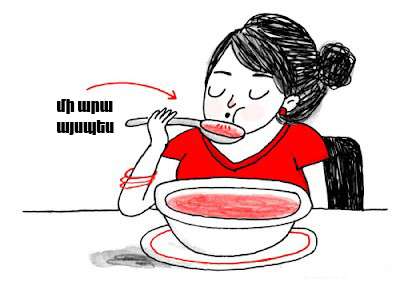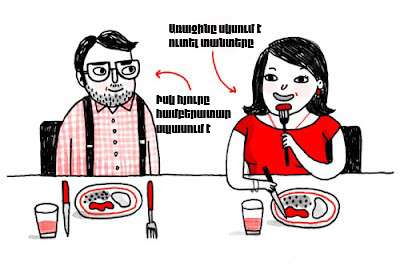 2. Եթե դուք ամեն դեպքում ոչ թե թագուհի եք, այլ հրավիրված հյուր, ապա բարի եղեք սպասել, մինչև տանտերն ու տանտիրուհին առաջինը փորձեն ուտելիքը: Մի գցվեք ուտելիքի վրա, քանի որ դա այդքան էլ հաճելի տեսարան չէ:
