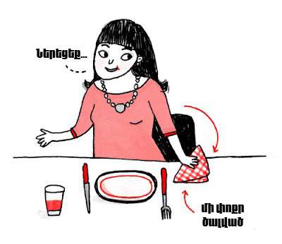 11. Եթե կարիք ունեք զուգարան գնալ և չգիտեք, թե որտեղ դնել անձեռոցիկը, պարզապես այն դրեք ձեր ափսեից ձախ` թեթևակի ծալելով: