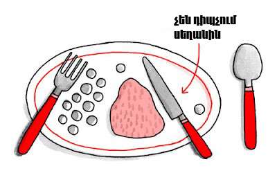9. Այն բանից հետո, երբ սկսել եք օգտվել դանակ-պատառաքաղից, դրանք այլևս չպետք է դիպչեն սեղանին: