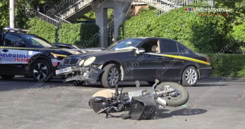 Այսօր՝ մայիսի 31-ին, մոտոցիկլի և ավտոմեքենայի բախում է տեղի ունեցել Երևանում: Ժամը 16:50-ի սահմաններում Շիրազի փողոցում բախվել են «Mercedes» մակնիշի ավտոմեքենան և մոտոցիկլը: