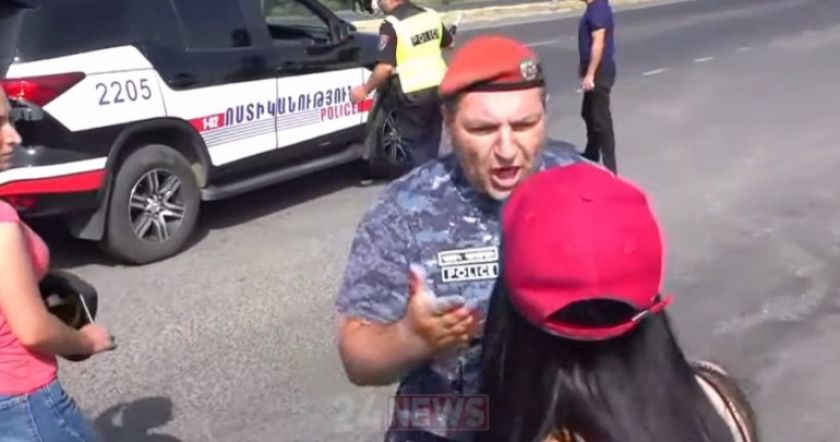 Սակայն մեծաթիվ ոստիկաններն ակցիայի մասնակիցներին բերման ենթարկեցին։ Կարմիր բերետավորներից մեկը հարվածեց 24news.am կայքի լրագրող Մերի Մանուկյանին: