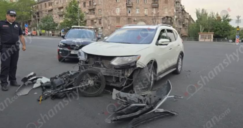 Այսօր՝ հուլիսի 3-ին, ավտոմեքենայի և մոտոցիկլի հերթական բախումն է տեղի ունեցել Երևանում։ Ժամը 18։20-ի սահմաններում Ազատության պողոտա-Բաբայան փողոցի խաչմերուկում բախվել են «Nissan Rogue» մակնիշի ավտոմեքենան և առանց համարանիշի մոտոցիկլը։
