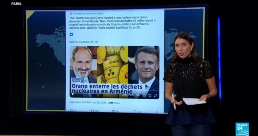 Ֆրանսիական France 24 հեռուստաընկերությունն անդրադարձել է վերջերս տարածված կեղծ լուրին այն մասին, թե Ֆրանսիան իբր գաղտնի կերպով միջուկային թափոններ է տեղափոխել Հայաստան։ Հեռուստաընկերության պատրաստած ռեպորտաժում թղթակից Կատարինա Մաղշոն դը Աբղոն շեշտում է, որ դա կեղծ լուր է, որն արագորեն վիրուսային դարձավ սոցցանցերում։
