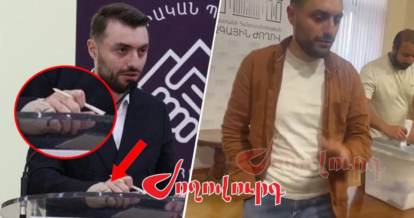 Եվ, ահա Armlur.am-ը նկատեց, որ հուլիսի 12-ին կայացած Գորիսի քաղաքական ժողովի ժամանակ Արեն Մկրտչյանի ձեռքը կոտրված է` ֆիկսատրով այն ֆիկսված է: Ու բացահայտվում է, որ ՔՊ-ական Արեն Մկրտչյանը ակնհայտ խաբել է, ու իսկապես այդ միջադեպի օրը ձեռքը կոտրել է:
