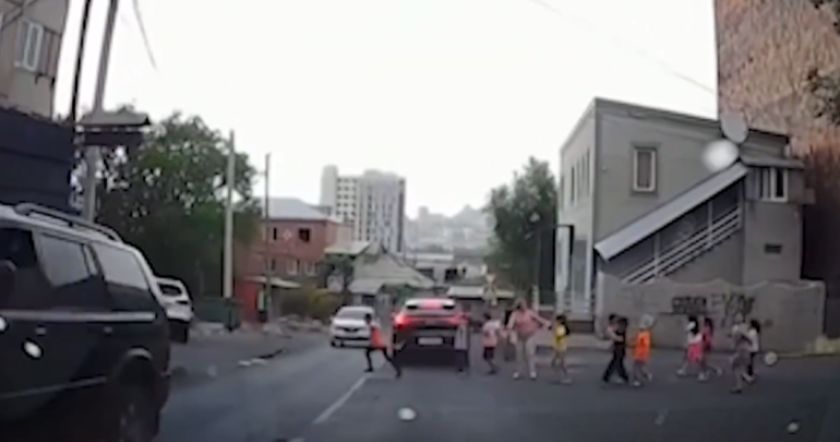 Տեսանյութում երևում էր նաև, թե ինչպես են երեխաները հայտնվում հանդիպակաց երթևեկող մեքենայի առջև, որը կտրուկ արգելակում է։