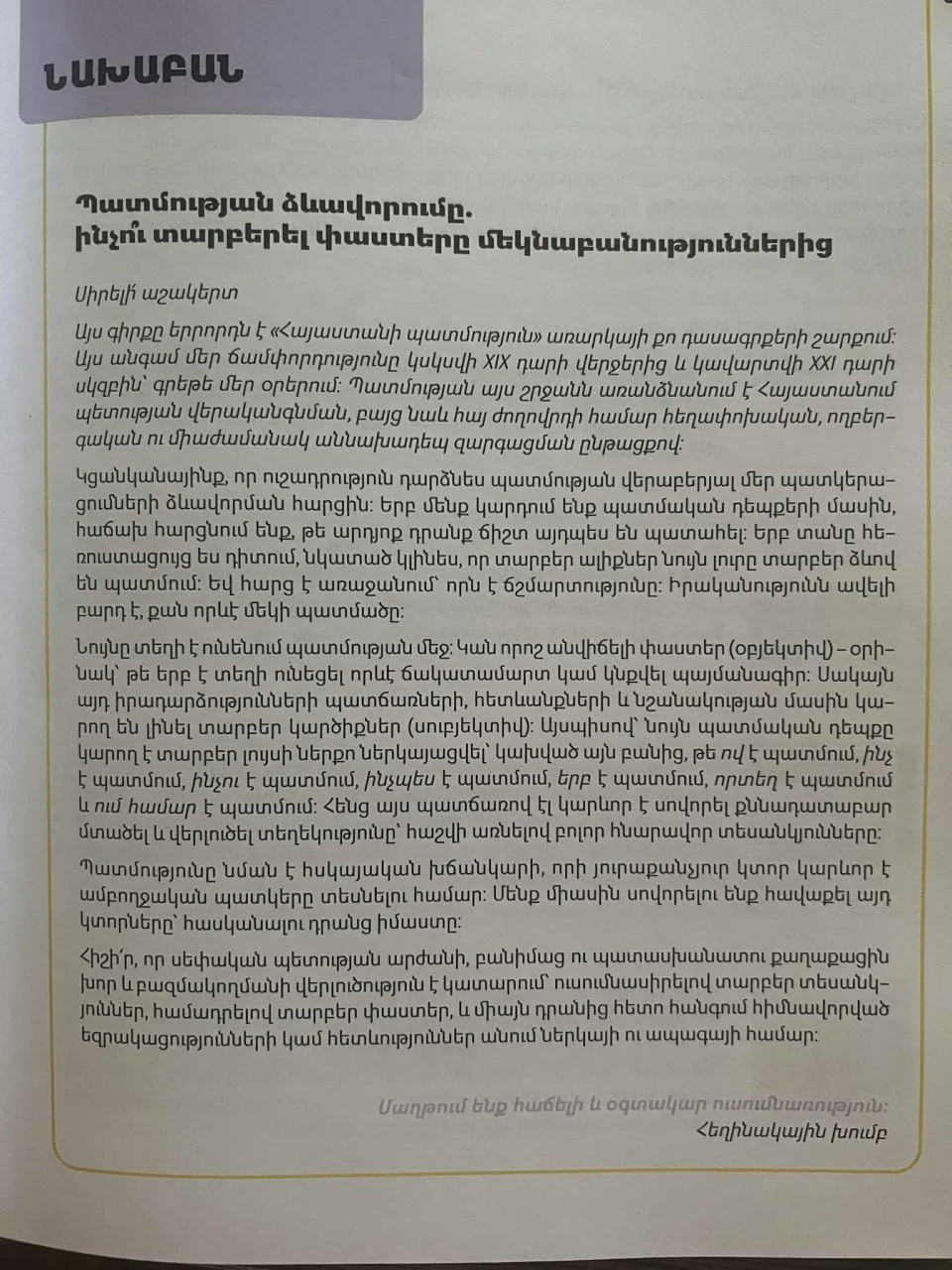 ԿԳՄՍ նախարար Ժաննա Անդրեասյանը ներկայացրել է «Հայաստանի պատմությունը» դասագիրքը։