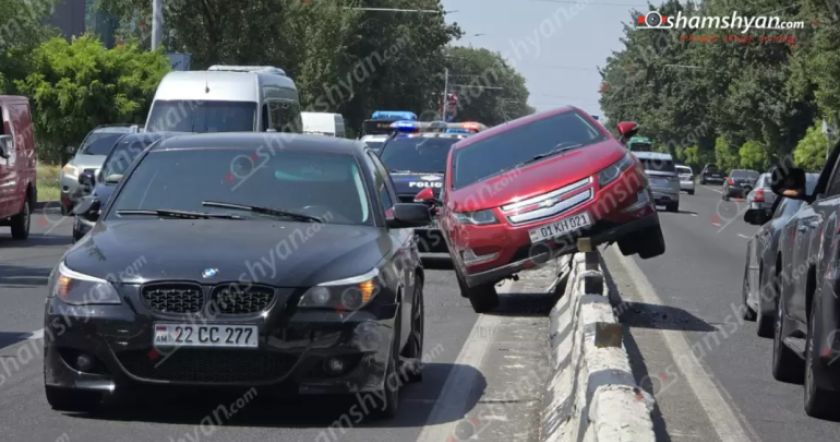 Բախման հետևանքով Chevrolet Volt»-ը բախվել է բաժանարար գոտում տեղադրված բետոնե պաշտպանիչ պատնեշին և հայտնվել դրա վրա։