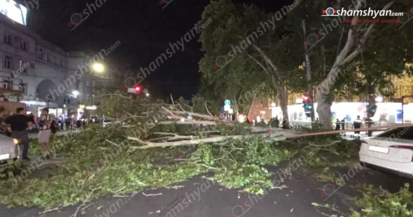 Ժամը 20:30-ի սահմաններում, քամու հետևանքով, Մաշտոցի պողոտա–Ամիրյան փողոցների խաչմերուկում ծառը տապալվել ու վնասել է տրանսպորտային միջոցներ։