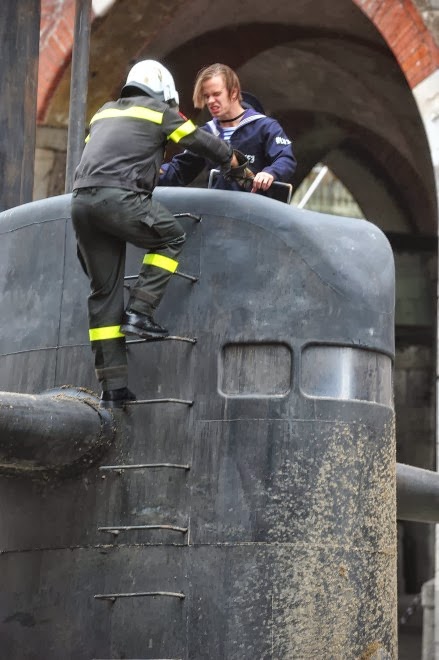 Սուզանավը, հրշեջների եւ ոստիկանության շրջափակման թիմի հետ, դառնալու է ապահովագրական գրասենյակի `«ամեն- բան կարող է տեղի ունենալ » գովազդային արշավի կարգախոսի մասը .