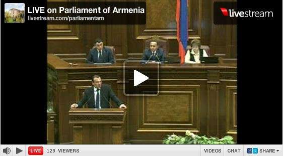 Նյութի աղբյուր՝ http://www.livestream.com/parliamentam Կայքում տեղ գտած մտքերն ու տեսակետները հեղինակի սեփականությունն են և կարող են չհամընկնել BlogNews.am-ի խմբագրության տեսակետների հետ: print Տպել