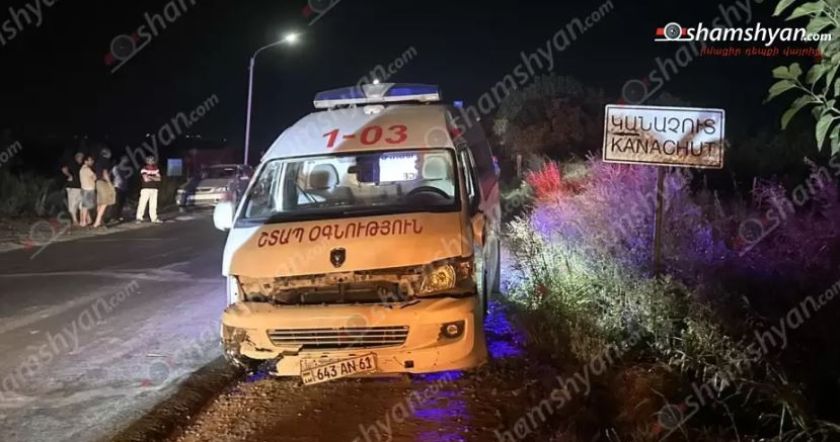 Արարատի մարզի Կանաչուտ գյուղում շտապօգնության ավտոմեքենան, որն այդ պահին հիվանդ էր տեղափոխում, բախվել է երկաթե սյանը, կա երկու վիրավոր։ Տեղեկությունը հայտնում է shamshyan.com–ը։