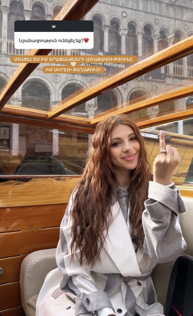 Երեկ պարուհին հարցուպատասխան էր կազմակերպել, որի ընթացքում խոսել է նշանադրության և ամուսնության առաջարկության մասին։