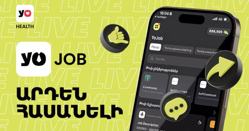 Նորարարական տեխնոլոգիական լուծումներով հայտնի YoHealth բջջային հավելվածը հայտարարել է էկոհամակարգի ընդլայնման և YoJob նոր հարթակի գործարկման մասին։ Հարթակը նպատակ ունի միավորել գործատուներին և աշխատանք փնտրողներին՝ ստեղծելով արդյունավետ ու հարմարավետ միջավայր։