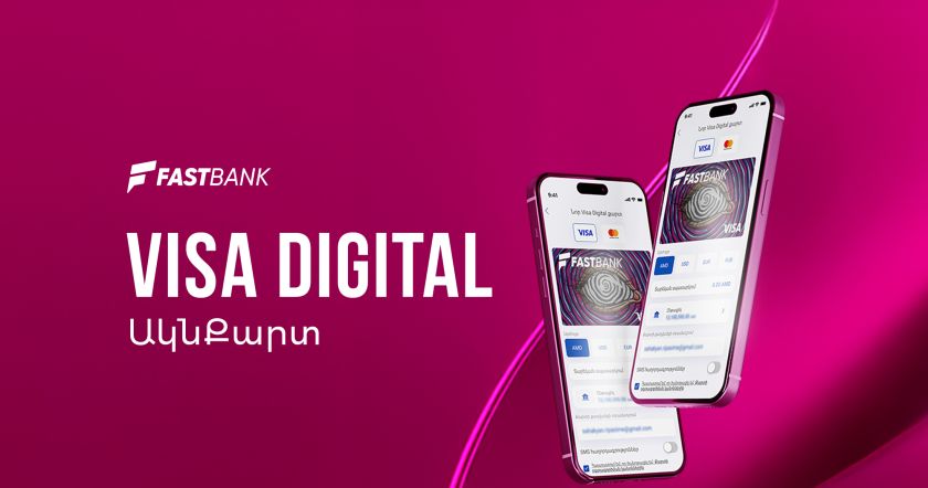 Ֆասթ Բանկը թողարկել է իր թվային քարտը՝ Visa Digital-ը, որը Բանկի հաճախորդներին հնարավորություն է ընձեռում իրականացնել ավելի ապահով և արագ անկանխիկ գործարքներ։