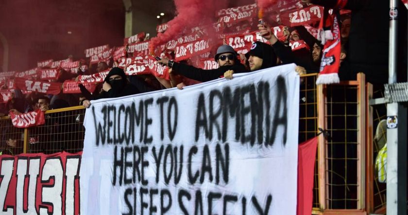 Բարի գալուստ Հայաստան, այստեղ կարող եք հանգիստ քնել, այս գրությամբ պաստառը հայ երկրպագուները պարզել են Հայաստան-Հունգարիա խաղի ժամանակ: