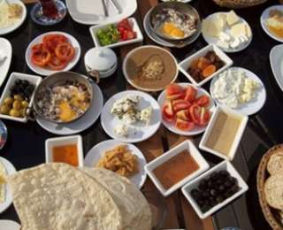 Թուրքիա. հաց, պանիր, ձիթապտուղ, ձու, պոմիդորներ, վարունգ, ջեմ, մեղր, նաև սուջուխ ու թեյ: