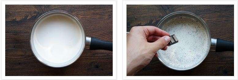 Իրար խառնեք սերուցքը, կիտրոնի կեղևը և շոկոլադը, շատ թույլ կրակի վրա խառնեք մինչև համասեռ զանգված ստացվի: Հետո պատրաստի զանգվածը լցրեք ժելատինով ամենների մեջ, խառնեք և դրեք սառնարան 30-45 րոպեով: Մատուցեք հատապտուղների կամ ինչ-որ սոուսի հետ: Բարի ախորժակ :)