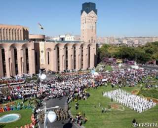 «Էրեբունի-Երևան 2795» տոնակատարության միջոցառումների շրջանակում Երևանի քաղաքապետարանին հարակից հրապարակում տեղի ունեցած հանդիսությունից հետո քաղաքապետ Տարոն Մարգարյանը տոնական շքերթի շուրջ 25 հազար մասնակիցների ուղեկցությամբ հանդիսավոր քայլերթով շարժվել է դեպի Հանրապետության հրապարակ: