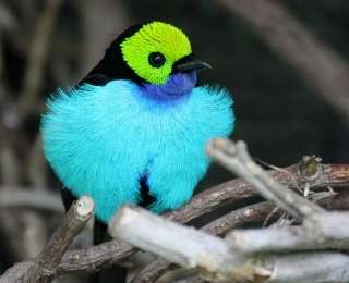 2. Դրախտային տանագրա Բնակվում է Կոլումբիայում, Բոլիվիայում, Բրազիլիայում, Ֆրանսիական Գվինեայում: Թռչունի գունավորումը շատ յուրօրինակ է` կանաչավում դեմք, երկնագույն կրծքավանդակ: 1. Սիրամարգ