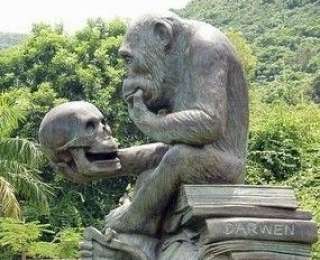 Այս հուշարձանը փիլիսոփայական նշանակություն ունի: Մտահոգ հայացքով շիմպանզեն նստած է Դարվինի աշխատությունների վրա և զննում է մարդկային գանգը: Այն խորհրդանշում է գիտելիքները, որոնք կապիկից մարդ են դարձրել կամ կապիկի մտահոգությունները՝ արդյո՞ք էվոլյուցիան ճիշտ ուղիով է ընթացել: