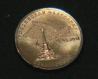 Ռուսաստնի բանկը 10 ռուբլի արժեքով մետաղադրամներ է թողարկել` նվիրված Ղրիմի բռնակցմանը Ռուսաստանի Դաշնությանը: Այս մասին գրում է Korrespondent.net-ը: