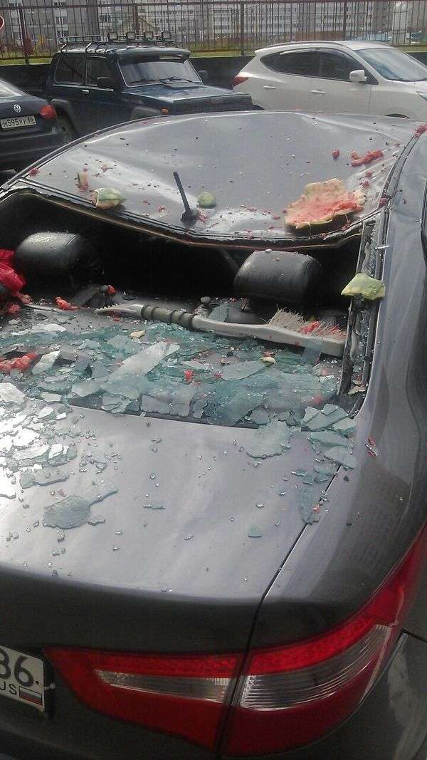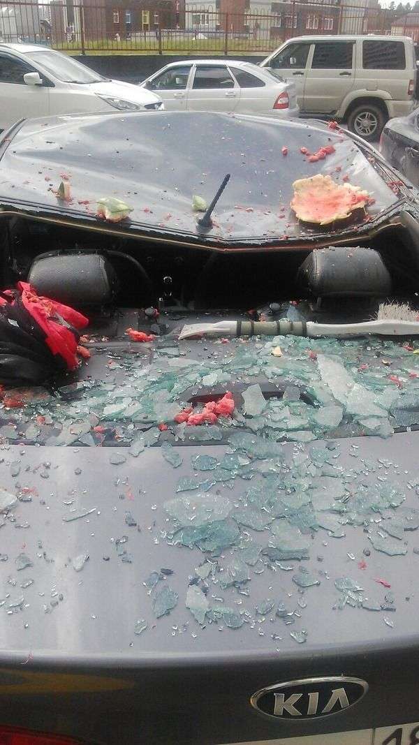 Ընկերուհու հետ վիճելու ժամանակ 31–ամյա տղամարդը, նյարդերը հանգստացնելու համար, բարձրահարկ շենքի պատուհանից դուրս է նետել ձմերուկը։ Ներքևում կայանված Kia–ի բախտը այդ օրը չբերեց և ահա, թե ինչ օրն է ընկել մեքենան` ձմերուկի հետ բախումից հետո.