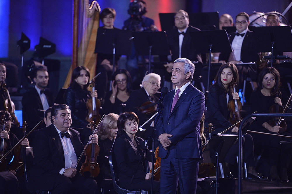 Իրոք, դուք թանկագին բարեկամներ եք, որովհետև արդեն 60 տարի դուք գալիս եք մեր տները, մտնում եք մեր բնակարանները, լցնում մեր երեկոները հետաքրքիր փաստերով, տեղեկացնում մեզ ու սովորեցնում գնահատել իրականությունը: Երկար տարիներ դուք մեզ հետ միասին կիսել եք մեր ուրախությունը ու, իհարկե, նաև ցավը: Ուզում եմ հատուկ շնորհակալություն հայտնել այն աշխատակիցներին, ովքեր գիտեն բնակարան մտնելու և խոսք ասելու արժեքը և դա անում են մեծ պատասխանատվությամբ: Ուզում եմ հատուկ շնորհակալություն հայտնել նրանց, ովքեր օգնում են եթերում երևացող մարդկանց ստեղծել լավ գործեր: Նոր եթերաշրջանը, առավել ևս հոբելյանական եթերաշրջանը, ծննդյան օրվա պես մի բան է: Այսօր տոն է, բայց այս տոնի ժամանակ էլ, տեսեք, տեսախցիկի ետևում մարդիկ աշխատում են: Մենք նոր տեսանք, թե մարդիկ ռեժիսորական վահանակի առջև ինչպես են աշխատում և շատ հաճախ այդ մարդկանց դեմքով էլ չենք ճանաչում»,- ասել է Նախագահը և ընդգծել, որ հենց նրանց շնորհիվ է, որ 60 տարի առաջ Հայաստանում իր գործունեությունն սկսեց հեռուստատեսությունը և կարճ ժամանակաընթացքում կարողացավ Խորհրդային Միության երկրներից ամենաշատ եթերաժամն ունենալ, ինչը պայմանավորված էր լավ մասնագետների առկայությամբ: Մեր երկրի անկախացումից հետո էլ, դժվարին պայմաններում աշխատող հեռուստատեսության աշխատակիցների աշխատանքի արդյունքում, ՀՀ Նախագահի խոսքով, տաղավարներից ջերմություն էր մտնում մարդկանց բնակարաններ: Այսօր արդեն բոլորովին նոր և ժամանակակից տեխնիկայով հագեցած, բարձրորակ պատկեր հաղորդող հեռուստատեսությունը փորձառու մասնագետների աշխատանքի, ինչպես նաև բարեկամ Չինաստանի Ժողովրդական Հանրապետության կողմից հեռուստաընկերությանը ցուցաբերված օժանդակության արդյունքն է: