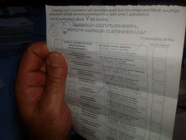 Այստեղ քաղաքացիներից մեկն իր քվեաթերթիկի վրա մեծ խաչ էր քաշել և ժպիտներ նկարել: