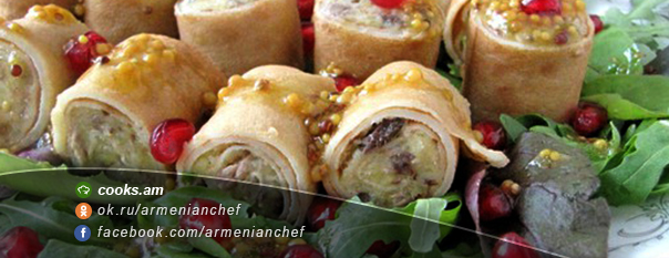 - Շարում ենք հազարի թերթերը, նրբաբլիթները կտրատում ենք և վրան լցնում սոուսն ու նռան հատիկները: Ահա և վերջ: