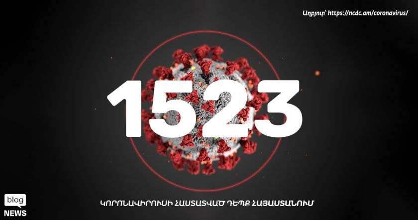Ըստ ՀՀ ԱՆ Հիվանդությունների վերահսկման և կանխարգելման ազգային կենտրոնի՝ ապրիլի 23-ի ժամը 11:00-ի դրությամբ իրականացված կորոնավիրուսային հիվանդության (COVID-19) թեստավորման արդյունքում Հայաստանում վարակվածների թիվը հասել է 1523-ի, ունենք առողջացման 659, մահվան՝ 24 դեպք, փաստացի բուժվողները 840-ն են, բացասական թեստեր՝ 15960: