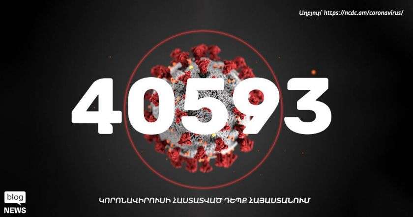 Հայաստանում օգոստոսի 11-ի դրությամբ հաստատվել է կորոնավիրուսով վարակման 160 նոր դեպք, վարակվածների ընդհանուր թիվը հասել է 40593-ի: