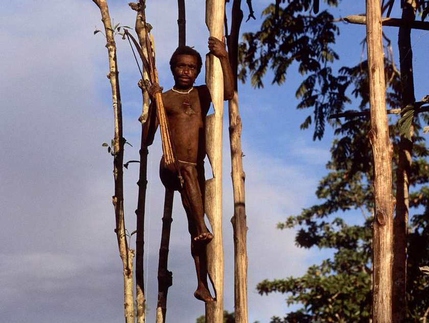 Կորովայ ցեղը, օրինակ, ծառերին՝ 6-12 մ բարձրությության վրա, տներ կառուցելու հետաքրքիր ավանդույթ ունի : Նրանք ապրում են ծառերի վրա, որպեսզի մութն ընկնելուց հետո խուսափեն զոմբիների և կախարդների ենթադրյալ հարձակումներից : Յուրաքանչյուր տուն պահպանվում է մեկ տարի, իսկ հետո հարկավոր է կառուցել նորը, հետևաբար այստեղ ժամանակը որոշվում է տներով, որոնցում ապրել է մարդը : Օրինակ, ժամանակի մի մասը կարելի է նկարագրել այդ ընթացքում փլուզված տների քանակով : Այնպիսի իրադարձություններ, ինչպիսիք են ծնունդը, մահը, ամուսնությունը կամ սպանությունը, կատարվել են որևէ տան ժամանակ : Դարը կազմավորվում է իրադարձություններից, որոնք կատարվել են, երբ տների շարքերը բնակեցված են եղել :