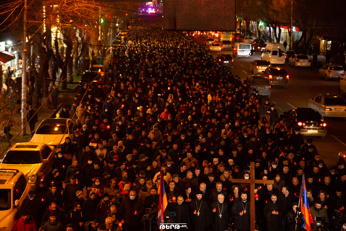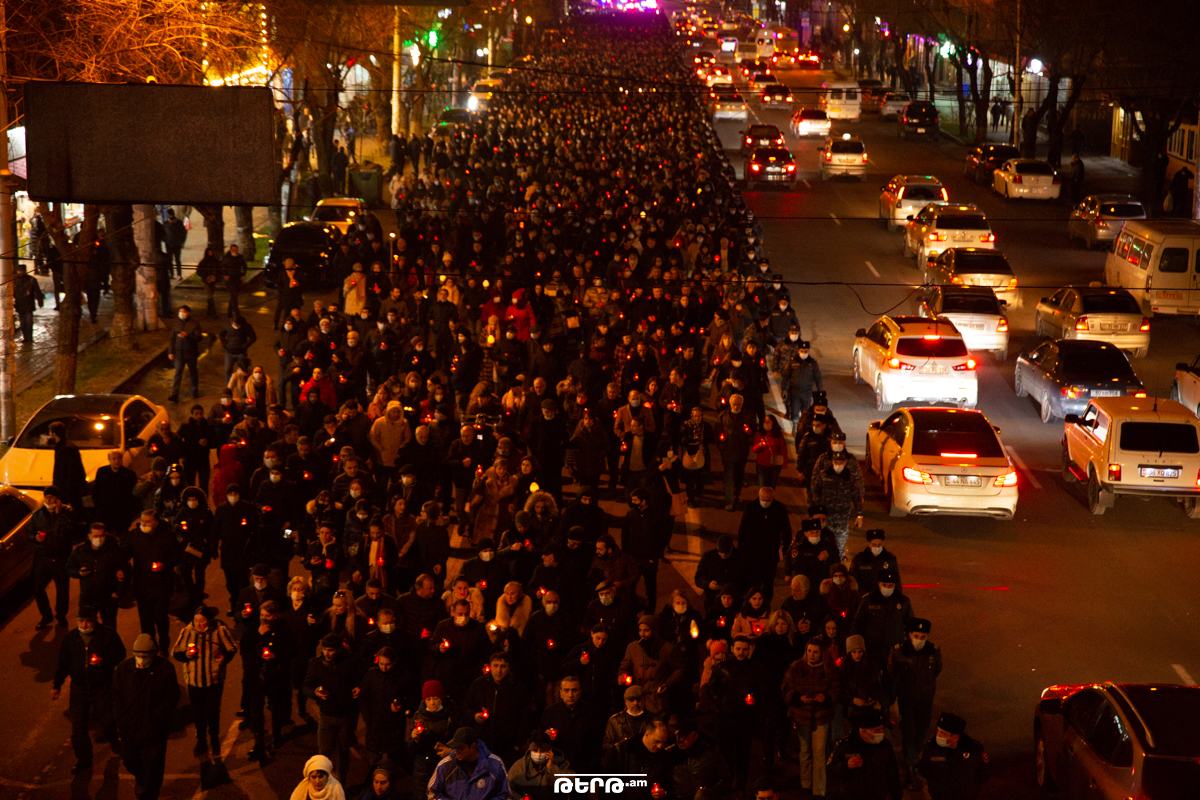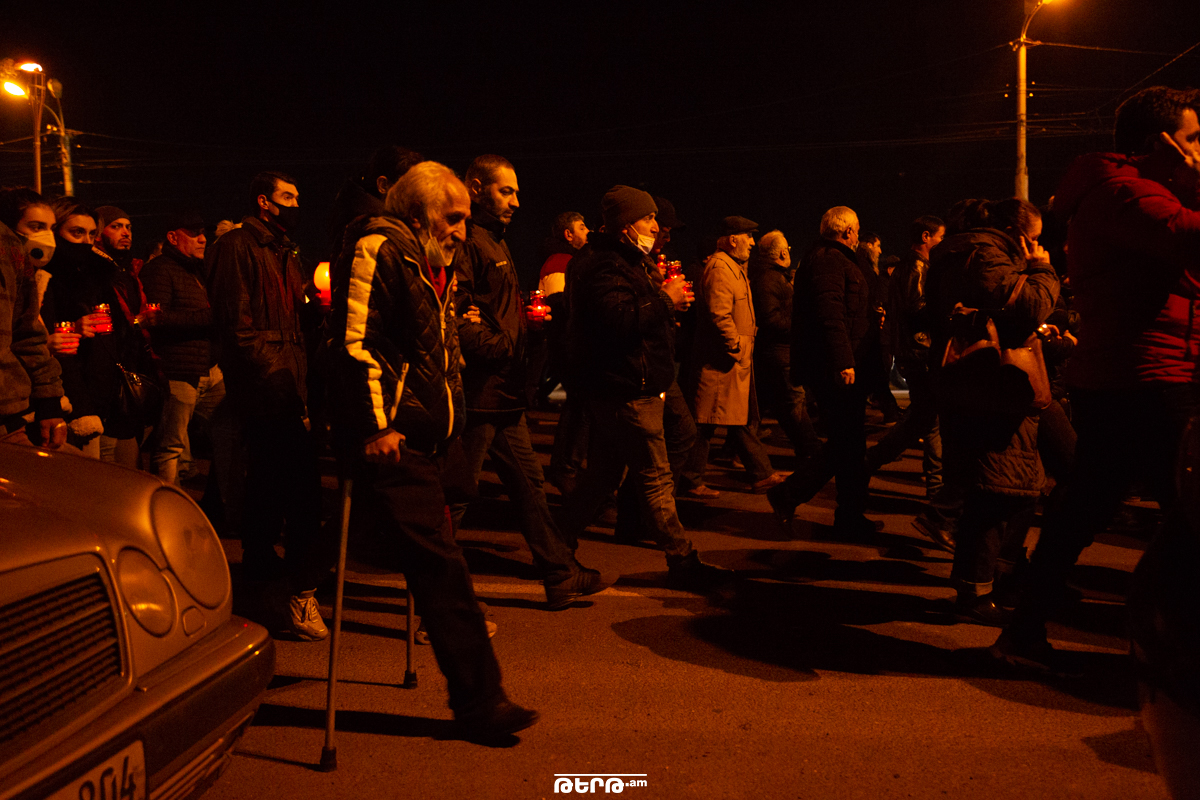 Ի հիշատակ Արցախում զոհված հերոսների՝ այսօր քաղաքացիները ջահերով երթ արեցին Եռաբլուր։ Երթ մեկնարկել էր Գարեգին Նժդեհ հրապարակից։