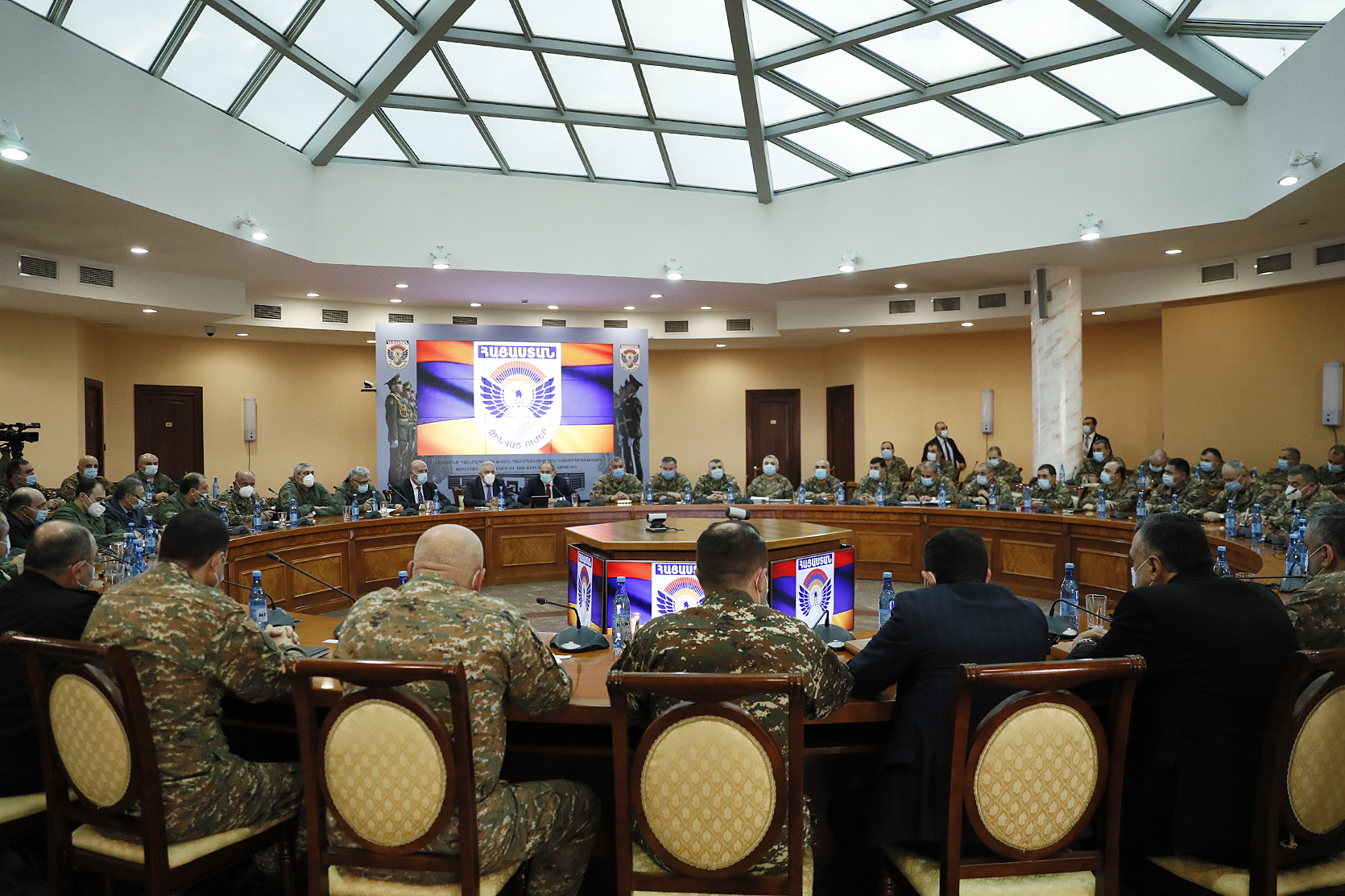 Նիկոլ Փաշինյանը Պաշտպանության նախարարությունում խորհրդակցություն է անցկացրել Զինված ուժերի բարձրագույն սպայակազմի հետ: Խորհրդակցությանը մասնակցել են Պաշտապության նախարար Վաղարշակ Հարությունյանը, Գլխավոր շտաբի պետի տեղակալները, գեներալ-լեյտենանտ Արտակ Դավթյանը և այլք: