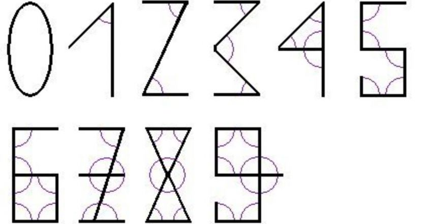 Մեկ այլ վարկածի համաձայն՝ թվականներն ի սկզբանե իրենցից գծիկներ են ներկայացել՝ հատուկ եղանակով իրար միացված այնպես, որ յուրաքանչյուր թվանշան իրեն համպատասխան անկյունների թվաքանակ ուներ։ Համաձայն այս տեսության՝ 1 թիվն ուներ մեկ անկյուն, 2-ը՝ երկու և այլն։