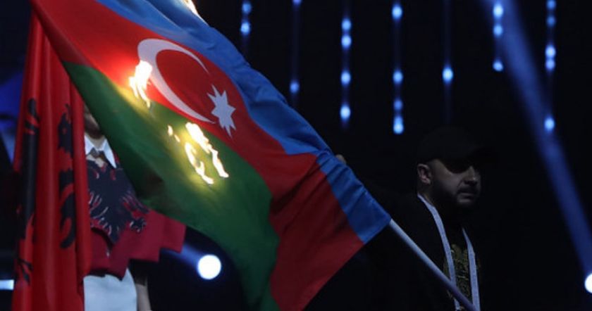 Քիչ անց մարզադահլիճից երկրպագուներից մեկը վազեց բեմ, դրոշը պահող աղջկա ձեռքից խլեց Ադրբեջանի դրոշը, վառեց եւ դուրս հանեց դահլիճից։ Անվտանգության աշխատակցին հաջողվեց բռնել ակցիա իրականացնողին, այնուհետեւ նոր դրոշ բերել ներս։